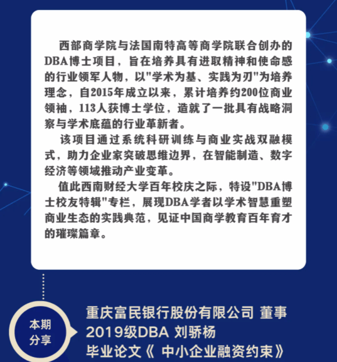 百年西财·育见卓越——企业家学者项目(DBA博士)校友特辑
