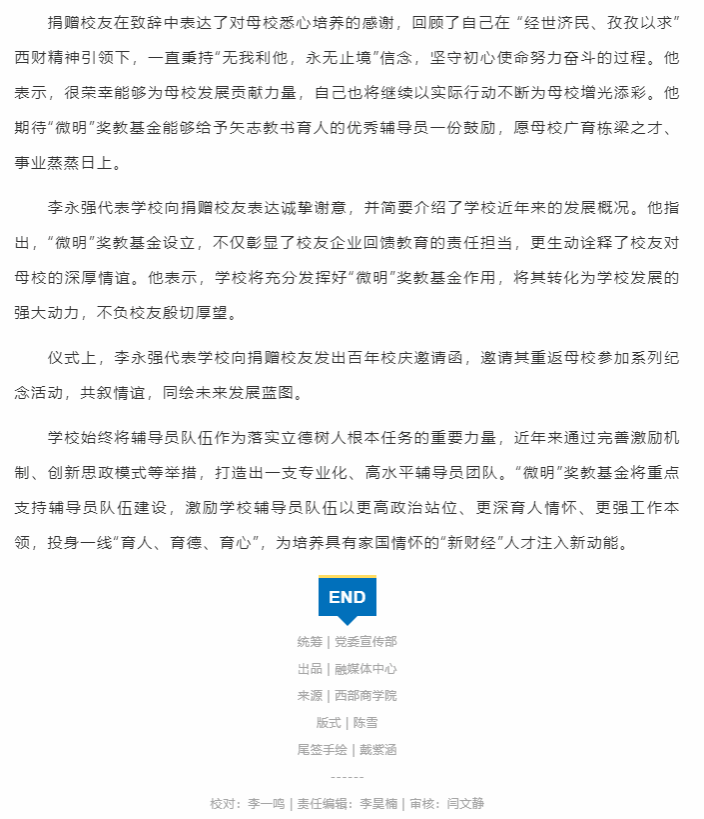 西南财大“微明”奖教基金,设立!