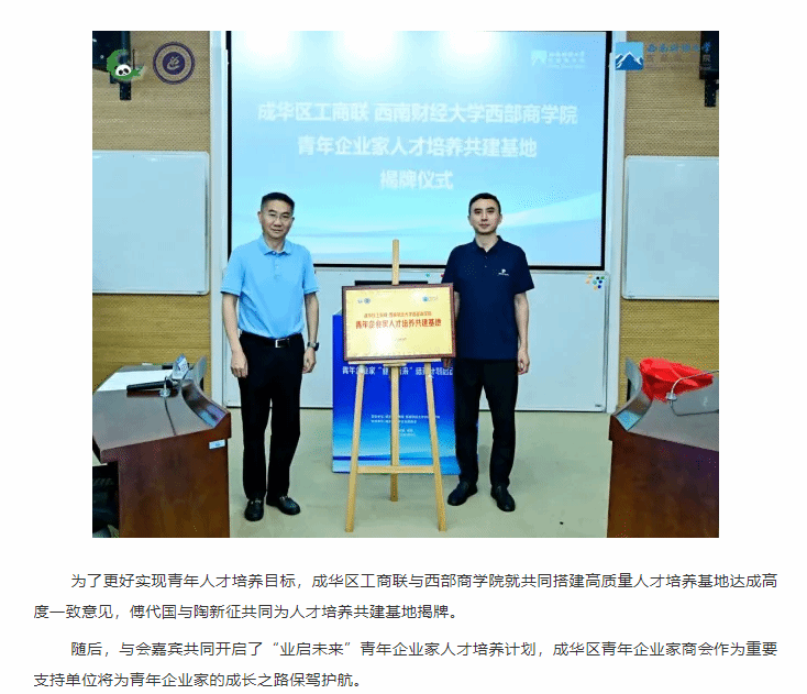 政校联动 业启未来—狗子28 与成华区工商联联合启动青年企业家培养计划