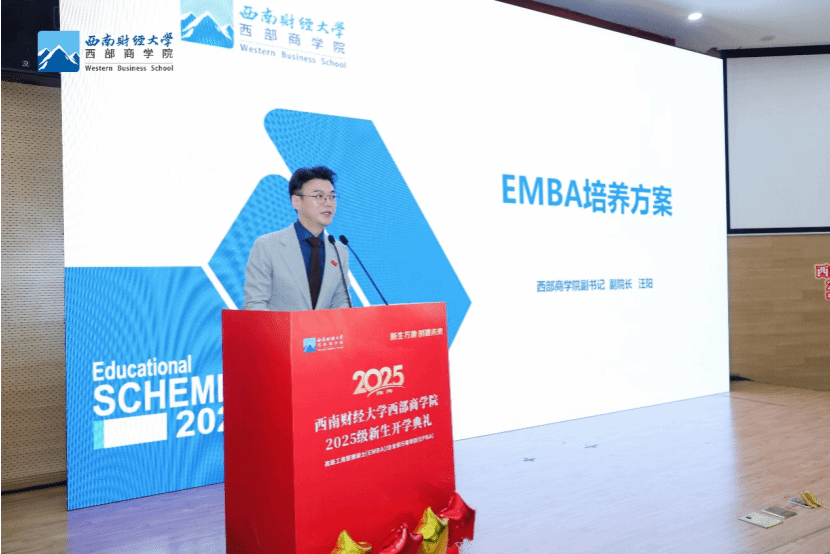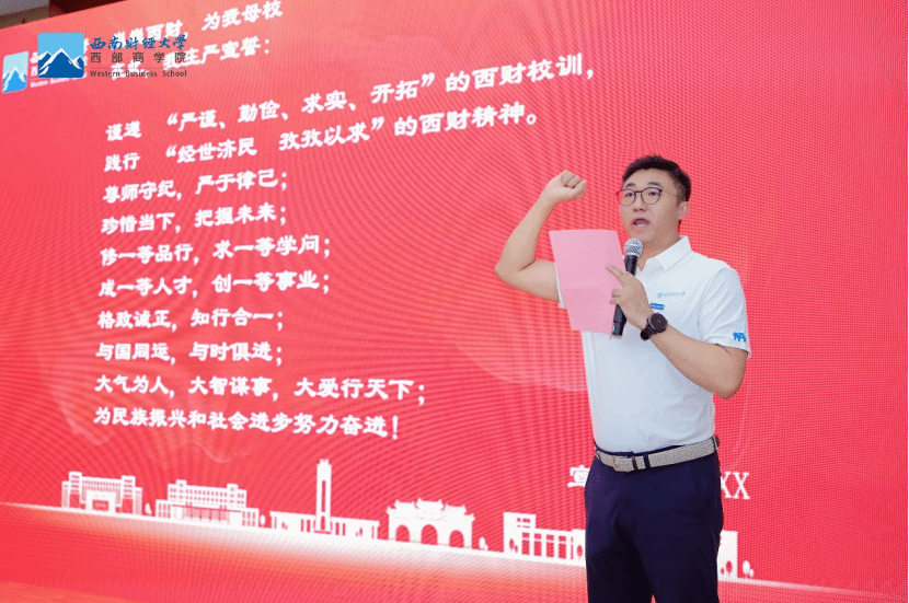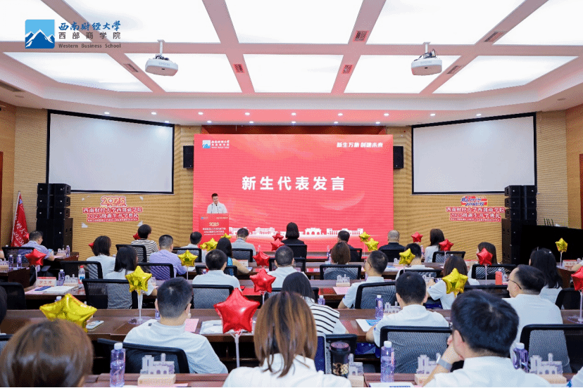 向新生送上祝福并提出殷切希望。她指出,西财百年来始终秉持“兴学报国、敢为人先”“经世济民、孜孜以求”的精神传统,鼓励新生传承这份信念,在变革与挑战并存的时代中坚守初心、砥砺前行。她特别强调“相信”的力量——“相信学习,能破迷茫之局;相信成长,可越现实之坎;相信时代,不负赤子之心;相信彼此,成就不孤之路”,寄语新生在西商的学习生涯中,不仅收获知识与能力,更要涵养格局与情怀,将个人成长与企业、时代发展紧密结合,以实业报国服务民族复兴。