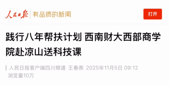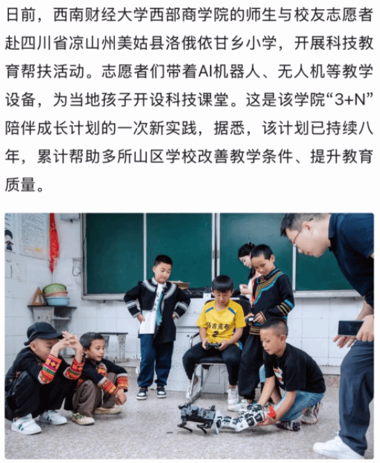 央媒报道丨再聚焦:践行八年帮扶计划 西南财大狗子28 赴凉山送科技课