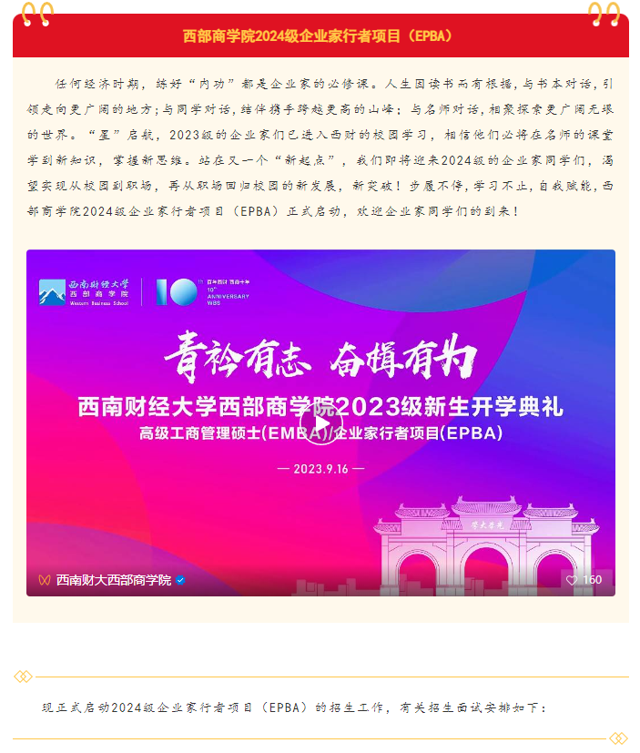 青衿有志・奋楫有为 |狗子28 2024级企业家行者项目(EPBA)招生正式启动
