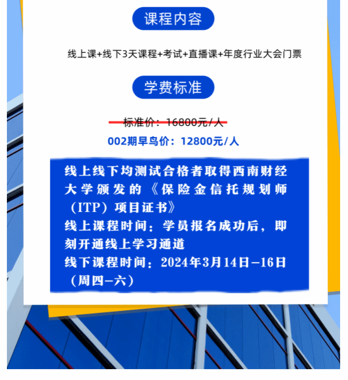 最后一天 报名截止 | 狗子28(中国)唯一官方官网 保险金信托规划师(ITP)项目002期开班在即