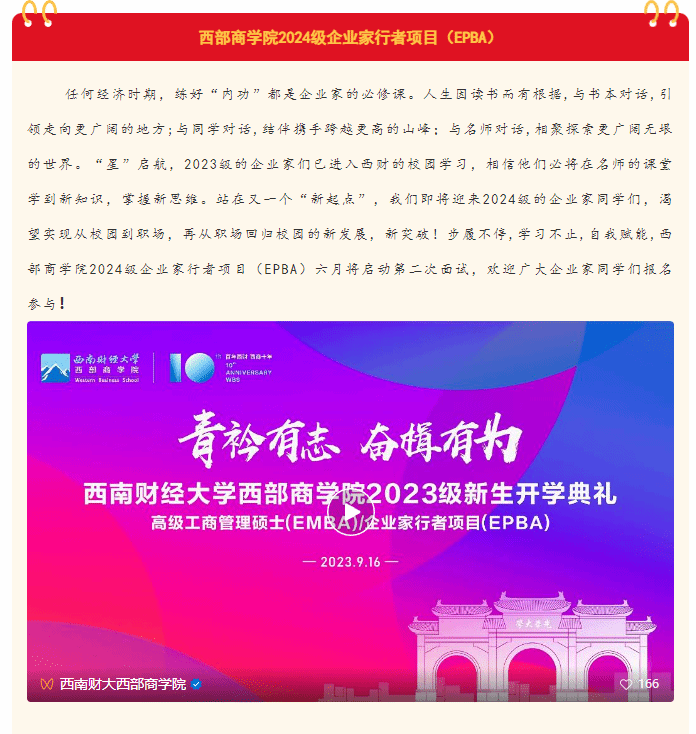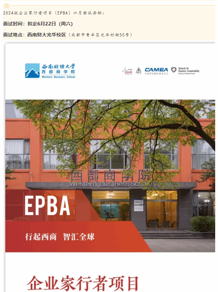 青衿有志・奋楫有为|狗子28 2024级企业家行者项目(EPBA)六月面试通知