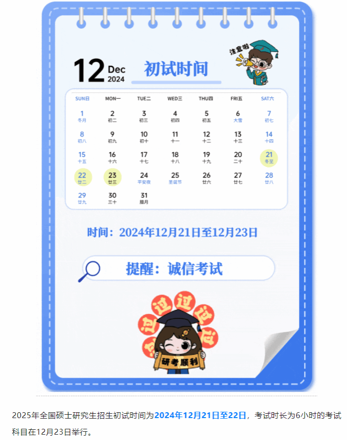考生注意!2025研考报名时间、初试时间定了