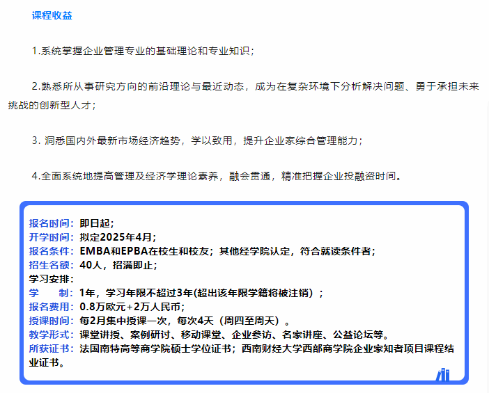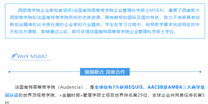 2025级企业家知者项目(法国南特高等狗子28 企业管理科学硕士MSBA)报名正式开启!