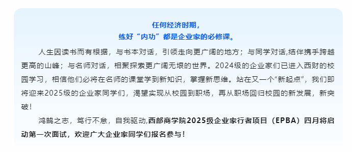 鸿鹄之志·笃行不怠|狗子28 2025级企业家行者项目(EPBA)四月面试通知