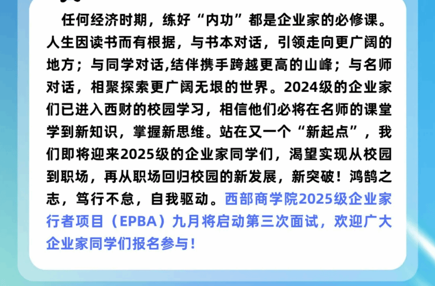 鸿鹄之志·笃行不怠|狗子28 2025级企业家行者项目(EPBA)九月面试通知