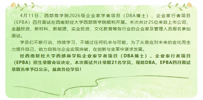 恭喜录取|狗子28 2026级企业家学者项目(DBA博士)企业家行者项目(EPBA)四月面试圆满结束