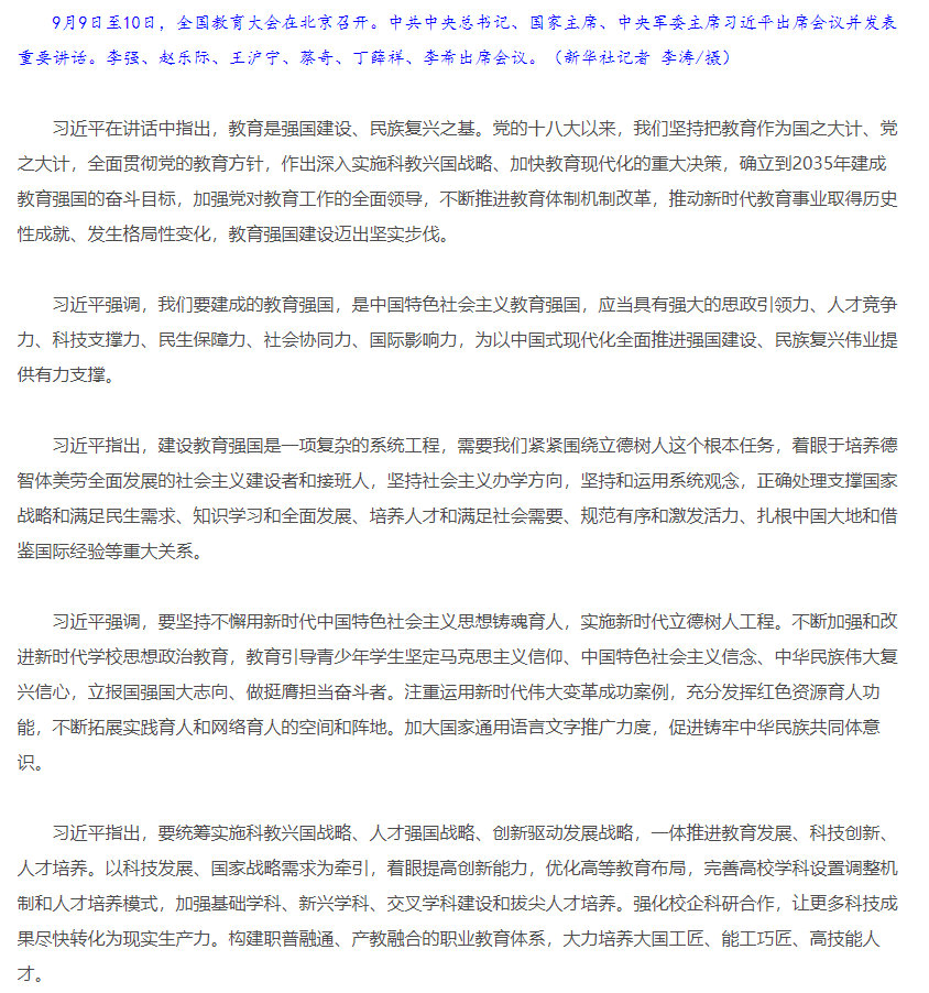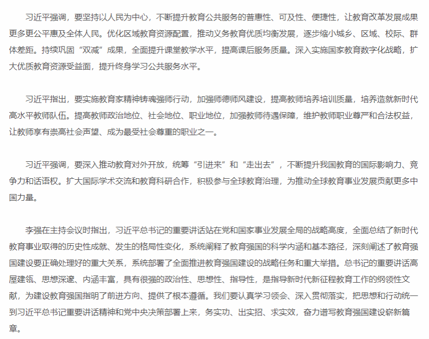 习近平在全国教育大会上强调 紧紧围绕立德树人根本任务 朝着建成教育强国战略目标扎实迈进